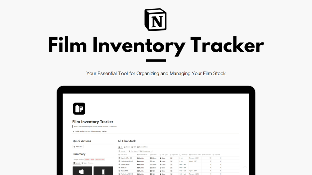 Are you tired of the hassle and confusion of keeping track of your film inventory manually? Look no further! The Film Photography Inventory Tracker is here to revolutionize the way you manage your film stock. With its user-friendly interface and powerful features, this tool will streamline your film photography workflow like never before.